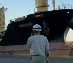 私の現在の仕事は、倉庫内で保管しているばら積みの肥料や包装品(フレコン)の品質管理や在庫管理を行っています。また、広島支店はプライベートバース(当社専用の埠頭)を持っている為、外航船や内航船の入津予定の確認や管理を日々の業務で行い、船が入った時には荷物を積み下ろす「荷役」の指示役として、現場作業員や港湾業者との調整を行う仕事に携わっています。